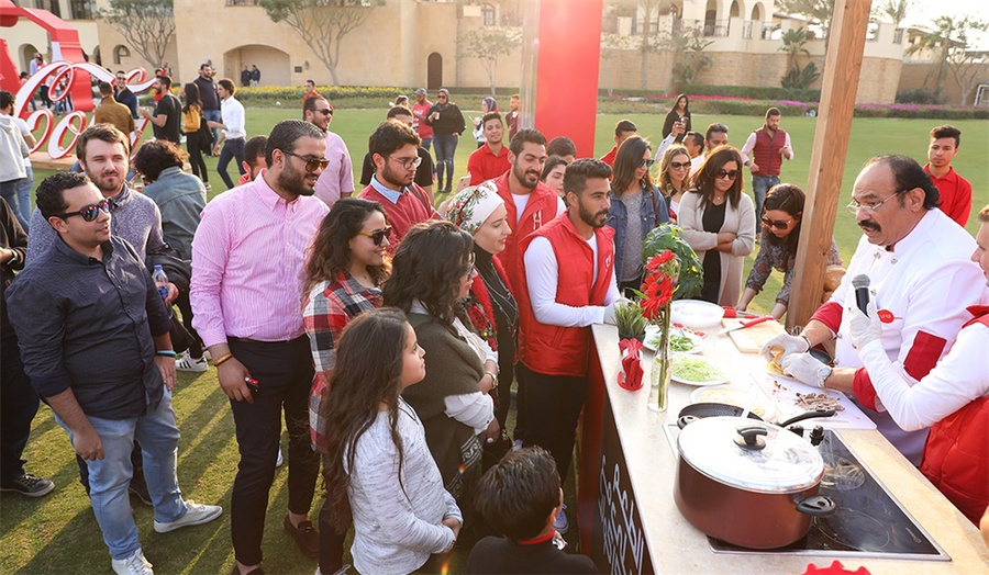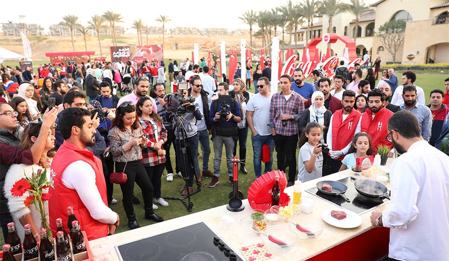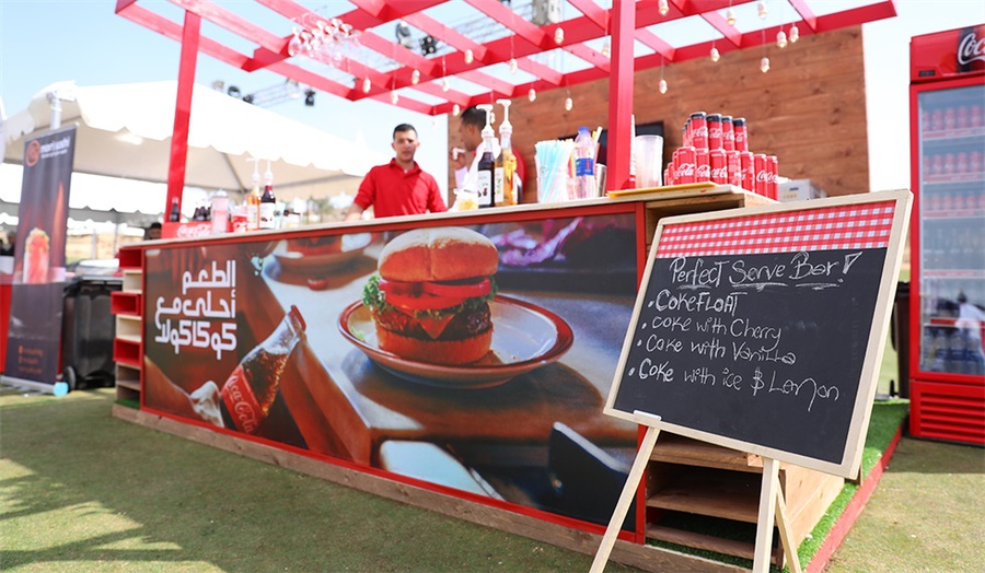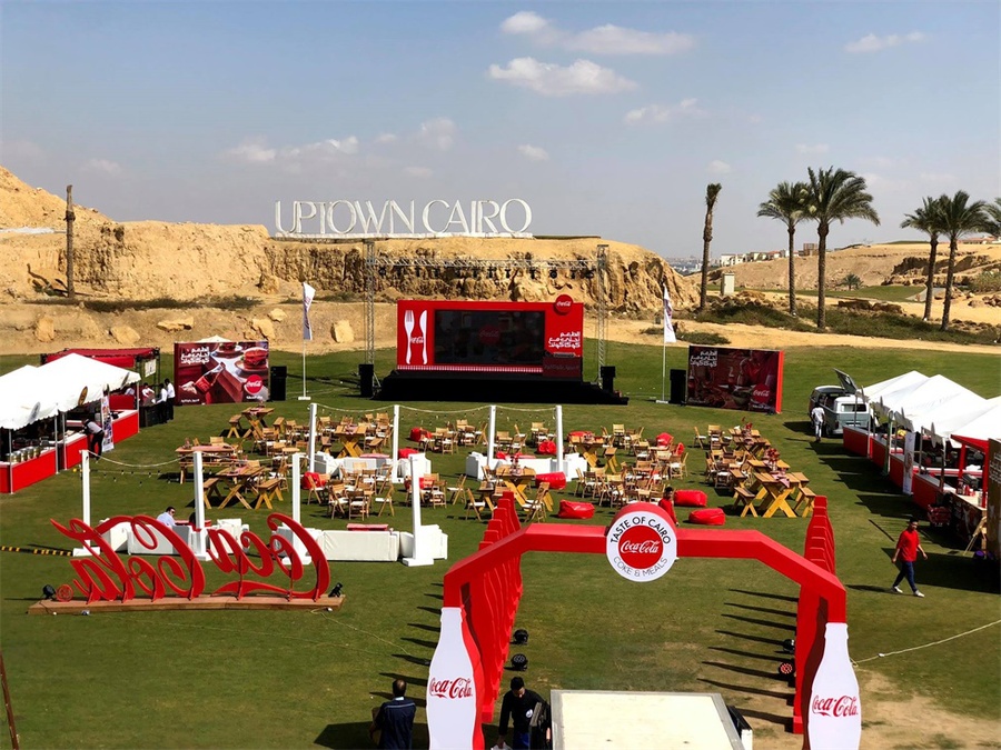 伊瑪爾地產(chǎn)贊助可口可樂(lè)在其項(xiàng)目“上城”舉行了“品味開(kāi)羅”美食節(jié)?;顒?dòng)現(xiàn)場(chǎng)滿(mǎn)滿(mǎn)的都是品牌化設(shè)計(jì),不管是門(mén)頭通道、餐飲區(qū)、主舞臺(tái)、休息區(qū)、自拍背景,甚至連餐碟都呈現(xiàn)了可口可樂(lè)品牌形象,活動(dòng)現(xiàn)場(chǎng)還邀請(qǐng)了廚師現(xiàn)場(chǎng)展示廚藝與烹飪講解。