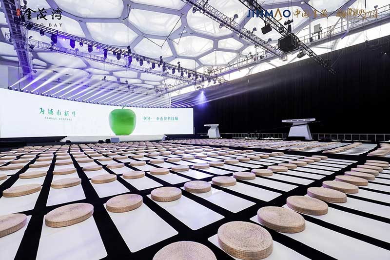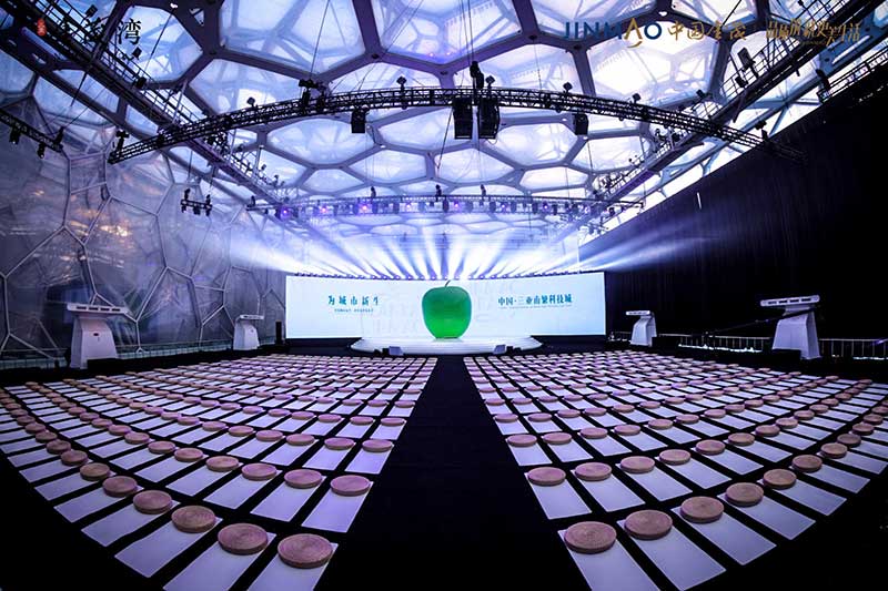 一顆高達(dá)6米的巨型青蘋果“空降”北京水立方,為寒冷的北京帶來(lái)一股來(lái)自南方的溫暖生命力。以“為城市新生”為主題,由中國(guó)金茂舉辦的金茂城市運(yùn)營(yíng)三亞金茂灣發(fā)布會(huì),就在這里進(jìn)行?;顒?dòng)將發(fā)布會(huì)外場(chǎng)打造機(jī)場(chǎng)形式,來(lái)賓的邀請(qǐng)函為機(jī)票,進(jìn)入活動(dòng)現(xiàn)場(chǎng),跟隨主辦方乘坐飛機(jī)從北京出發(fā)“前往”三亞,入場(chǎng)后統(tǒng)一換裝,更為休閑輕便的服飾,讓來(lái)賓也更為放松。而舞臺(tái)的形式,一個(gè)大蘋果的IP造型,超級(jí)視覺(jué)符號(hào)的建立,將三亞的綠色健康生活詮釋的淋漓盡致。