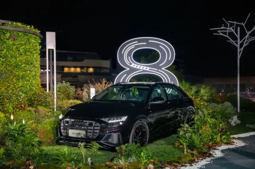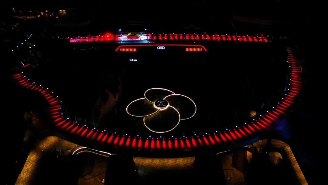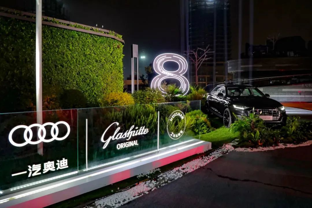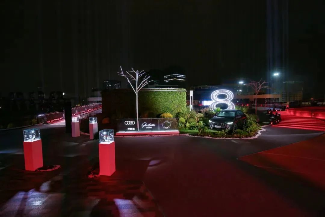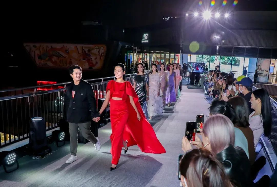 秀場(chǎng)選址在前灘太古里石區(qū)4樓天臺(tái),以兩座相連的空中廊橋?yàn)榛A(chǔ),創(chuàng)新的將奧迪Q8 尾燈造型掛在了廊橋之上,通過(guò)燈光投影的渲染,讓天際線、T臺(tái)、尾燈在同一水平線上,似乎既在空中走秀,又行走在奧迪Q8的車(chē)身之上。簽到區(qū)旁就是格拉蘇蒂手表的展示區(qū)域和奧迪Q8的展車(chē)空間,也成了當(dāng)晚合影拍照打卡的熱門(mén)背景。本次大秀同樣是國(guó)際設(shè)計(jì)師張卉山在國(guó)內(nèi)的首場(chǎng)快閃大秀,雙向奔赴的流量倍增,也成功的讓這場(chǎng)大秀成功刷屏了社交平臺(tái)。