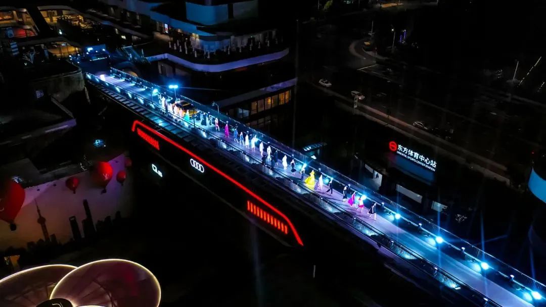 一汽奧迪 X 格拉蘇蒂原創(chuàng) X HUISHAN ZHANG,共同呈現(xiàn)了無(wú)邊美學(xué)秀場(chǎng)的第二季,延續(xù)了第一季在北京潮流藝術(shù)購(gòu)物中心——僑福芳草地“奧迪Q8懸浮T臺(tái)秀”的概念,這一次依舊是行走在“空中”,只不過(guò)地點(diǎn)換成了上海新晉的潮流地標(biāo)——前灘太古里。