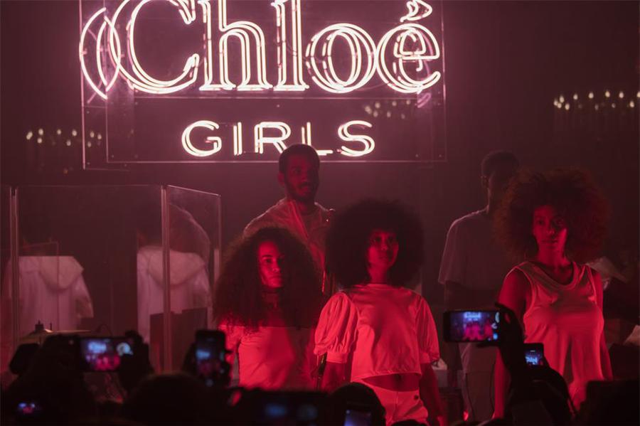 當(dāng)晚充滿了“instagram(圖片社交軟件)上的瞬間”,客人們整晚都在忙著抓拍照片。從紅地毯的照片和“蔻依俱樂部”的霓虹燈招牌,到舞臺(tái)布景和用抽象的燈光效果裝飾香檳區(qū),以及塞納河上的景色,還有格萊美獲獎(jiǎng)歌手索朗格出人意料的表演,無不美輪美奐的。