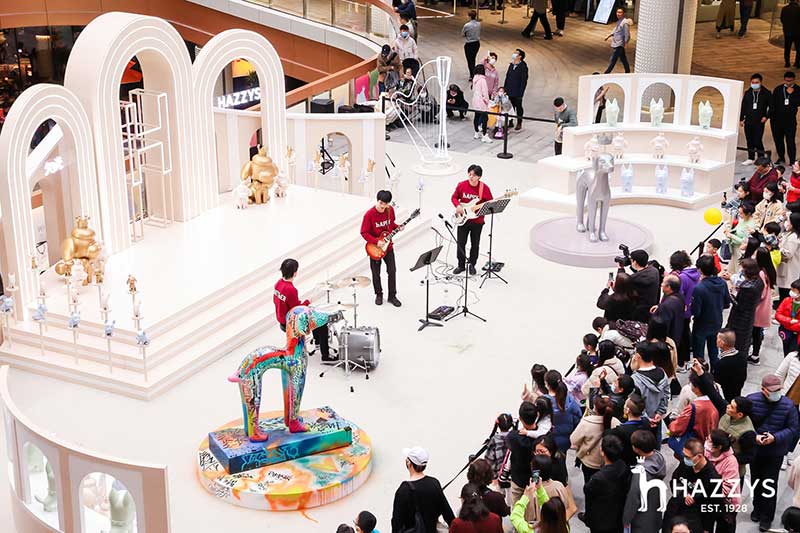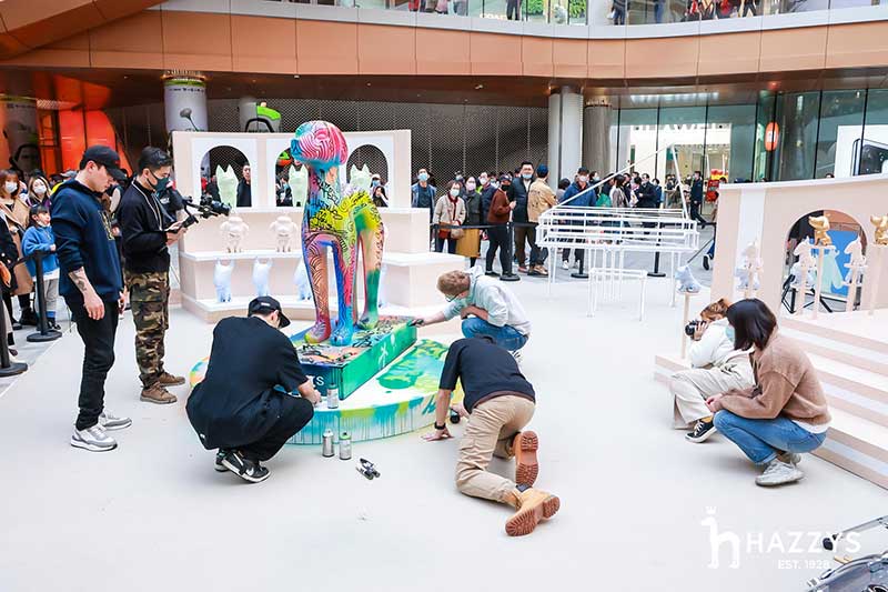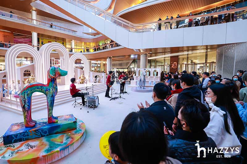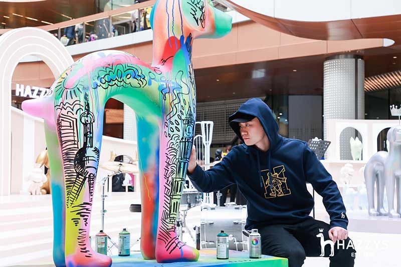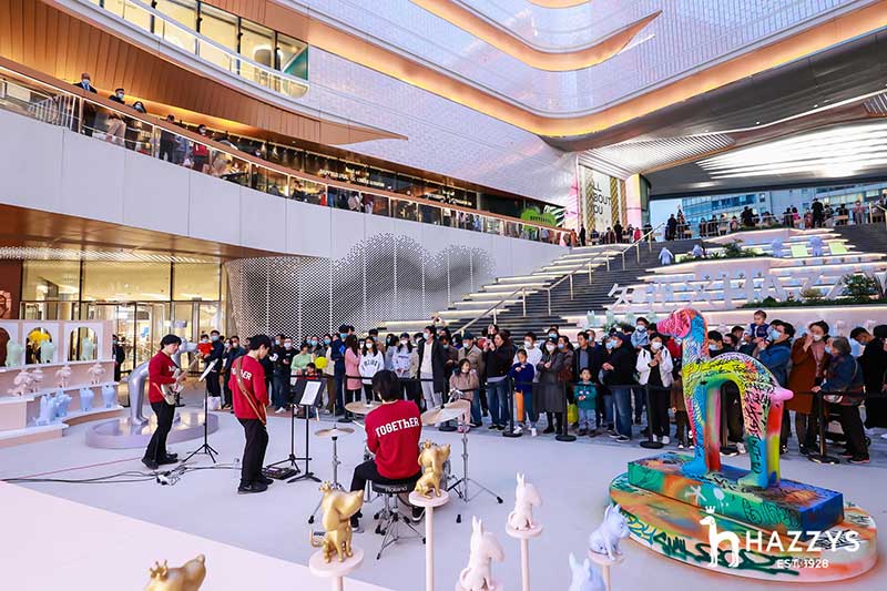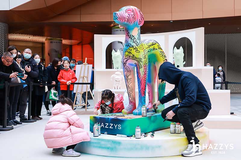 2021 HAZZYS萌寵展落座于上海大寧久光中心,給大家?guī)砣碌目扉W購物體驗,整個展區(qū)被布置為濃濃的藝術氣息的殿堂,開幕現場邀請Ethan進行涂鴉藝術創(chuàng)作,并有樂隊為觀眾獻上精彩表演。