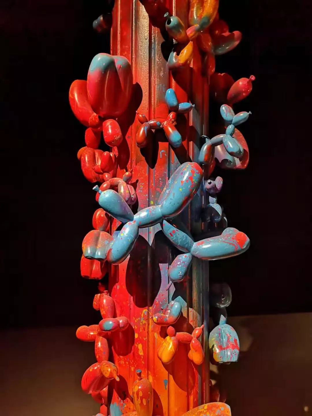 這部分能看見幾根羅馬柱上都纏繞了這些年比較火熱甚至在網(wǎng)上掀起熱潮的藝術(shù)元素:草間彌生的波點(diǎn)南瓜和KWAS。不禁讓人思索我們今日所追隨的到底是文化本身還是附加在潮流上的自己。