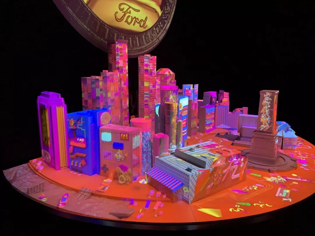 一眼望去,不同形態(tài)的彩色甜甜圈帶來強(qiáng)烈的視覺沖擊感,四面環(huán)繞的鏡子與光線都能映射出最真實(shí)的你。這間展廳無疑是女孩子停留時(shí)間最多的地方,360度花樣擺拍,不放過任何一個(gè)角落。