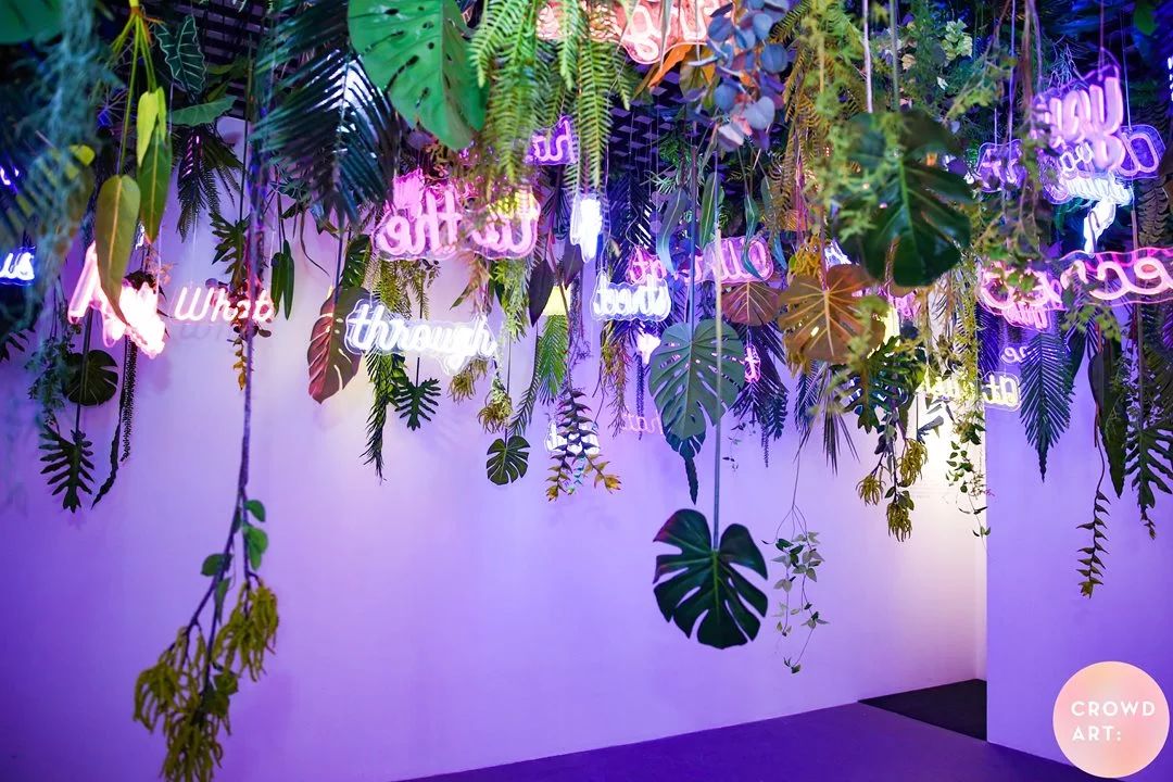 從粉色電話亭到巨型棒棒糖,從全屋沒有一個棱角的純白空間到充滿熱帶雨林味道的霓虹花園,從運用人影跟蹤技術打造的萌軟“小毛人”,到沉浸式動力交互裝置“色彩流體”,CrowdArt把最先進的黑科技和最用心的光影置景相融合,讓你進入前所未有的白日夢境。