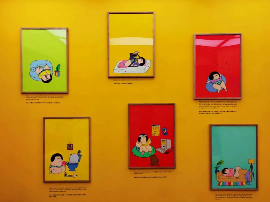 宅家俱樂部:這片區(qū)域里放了十幾幅Pansy形象的作品,Pansy躺著的樣子,是不是和前幾個月宅家的你一模一樣?作品下方配有Pansy的人生解讀,中英文兩種版本各有含義,去現場找一句你最喜歡的話吧。