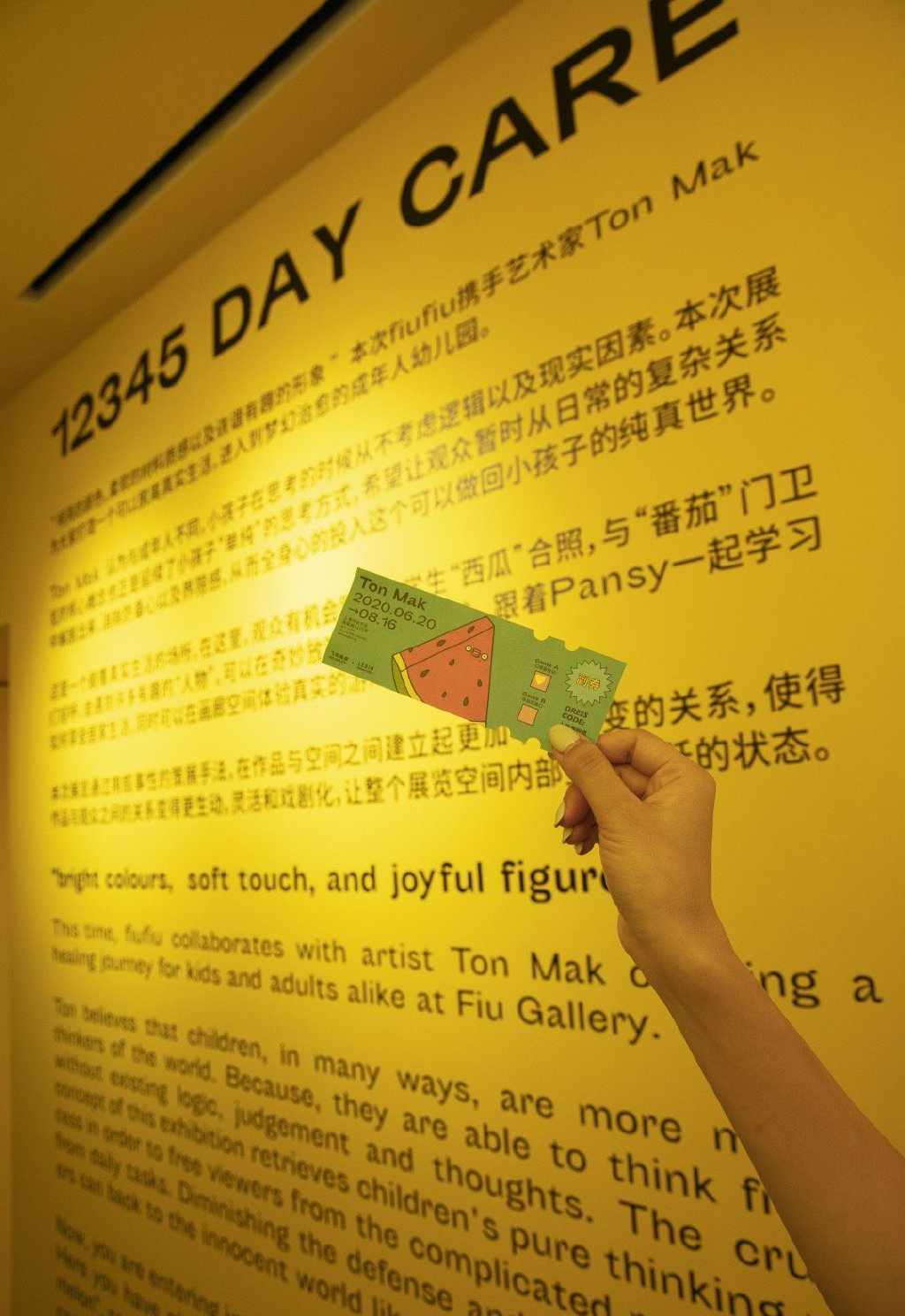 “12345 Day Care”展覽由FIU GALLERY主辦,展館攜手藝術家Ton Mak與國內知名品牌LEDiN跨界“出道”。展覽用敘事性的策展手法,通過雕塑、畫作、玩偶、視頻等不同緯度和感官的作品,為小朋友和大朋友開啟了一場可愛而治愈的旅行。