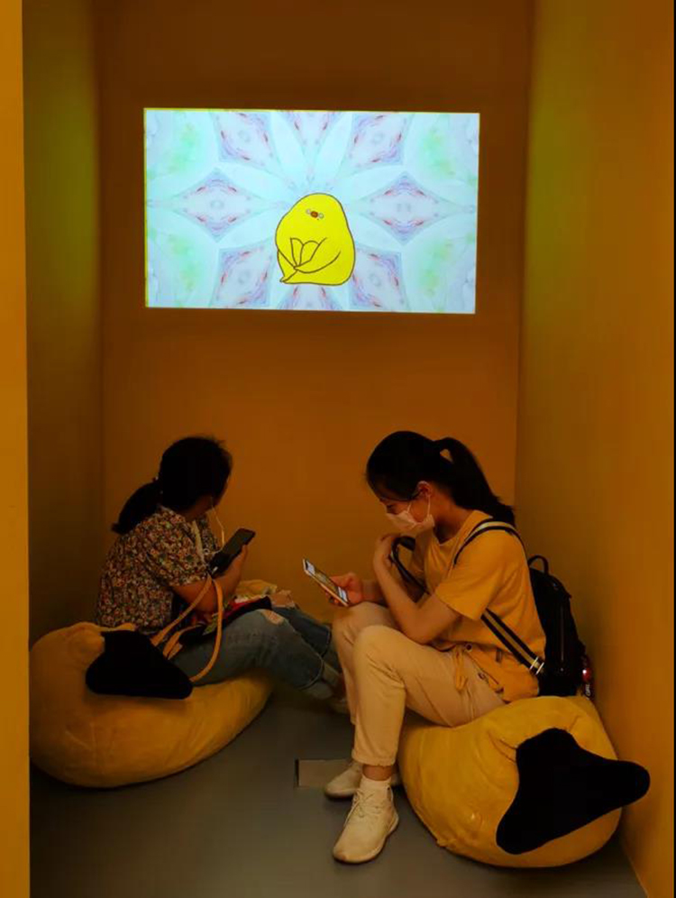 安心放映室:安心放映廳是小編全場最喜歡的小角落。配著輕輕的純音樂,大屏幕上會循環(huán)播放小視頻。坐在香蕉造型的沙發(fā)上看幾分鐘,讓人覺得自己十分平靜、煩惱全消。