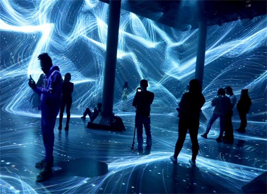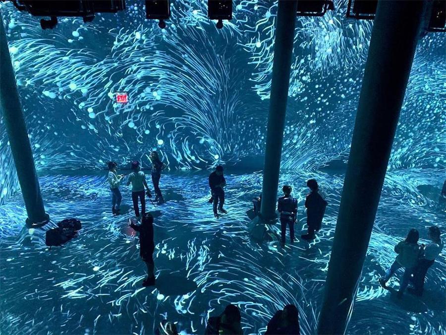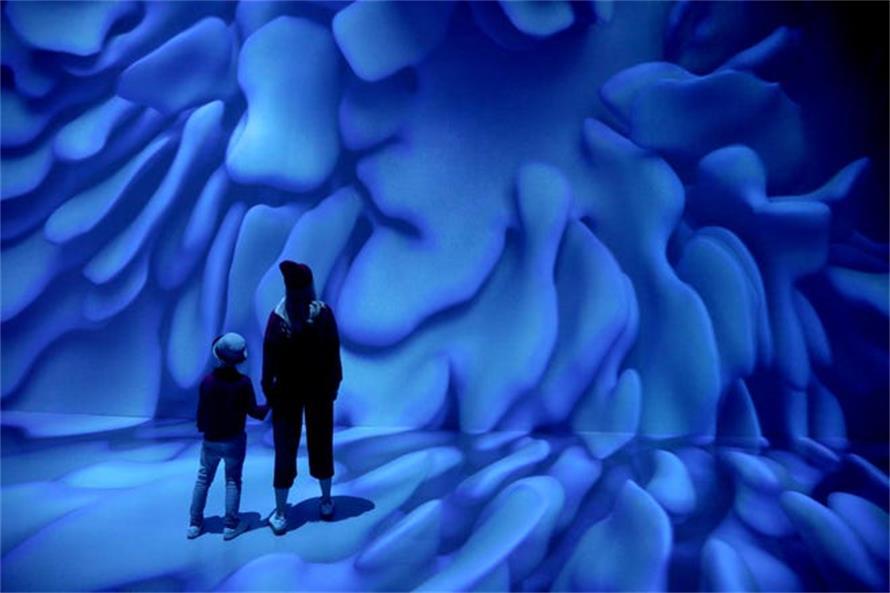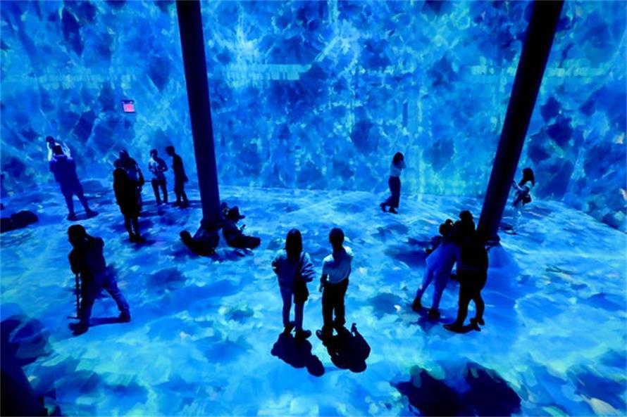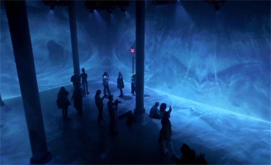 “淹沒”是受2020年潘通年度顏色啟發(fā)的沉浸式裝置,具有高度沉浸式的環(huán)境以及經(jīng)典藍色色調(diào)的互動元素,鼓勵參觀者思考自己與顏色的聯(lián)系和與之相關(guān)的情感。利用投影技術(shù)以全新的方式將觀眾與藝術(shù)聯(lián)系在一起-激發(fā)思想,情感和想象力。在2019年秋天開始,潘通就與互動藝術(shù)家接觸,為其2020年年度色彩設(shè)計了一個身臨其境的體驗。