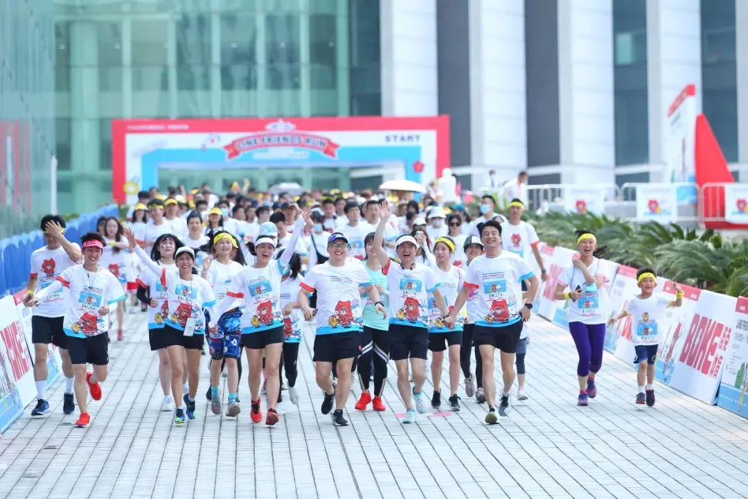 2021年羊城運(yùn)動(dòng)匯-花城歡樂(lè)跑-LINE FRIENDS RUN在廣州國(guó)際媒體港歡樂(lè)開(kāi)跑,超過(guò)2000名大小萌友踴躍參與!大家提前拿到可愛(ài)的能量物資包,穿戴好限定裝備準(zhǔn)備出發(fā)。歡笑聲、歡呼聲,加上振奮人心的音樂(lè)聲,匯合成歡樂(lè)海洋。溫順的布朗熊、活潑的可妮兔等卡通人物一直為大家加油,沖向5KM終點(diǎn)更有動(dòng)力啦,初夏美好的運(yùn)動(dòng)時(shí)光就該如此!