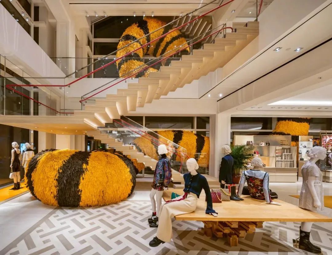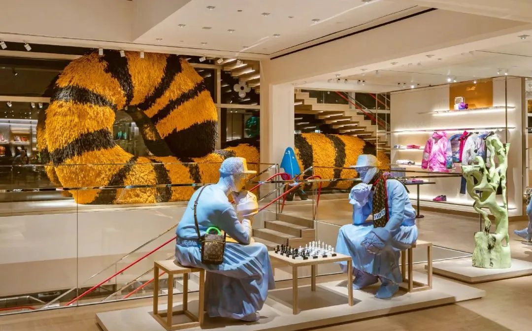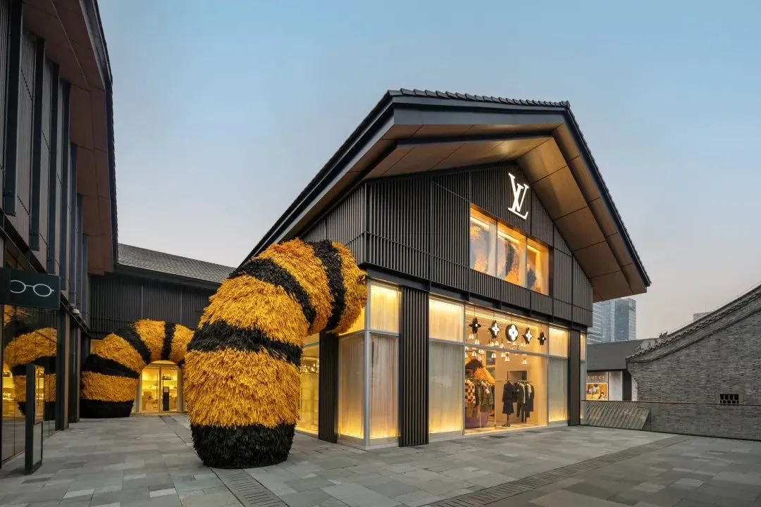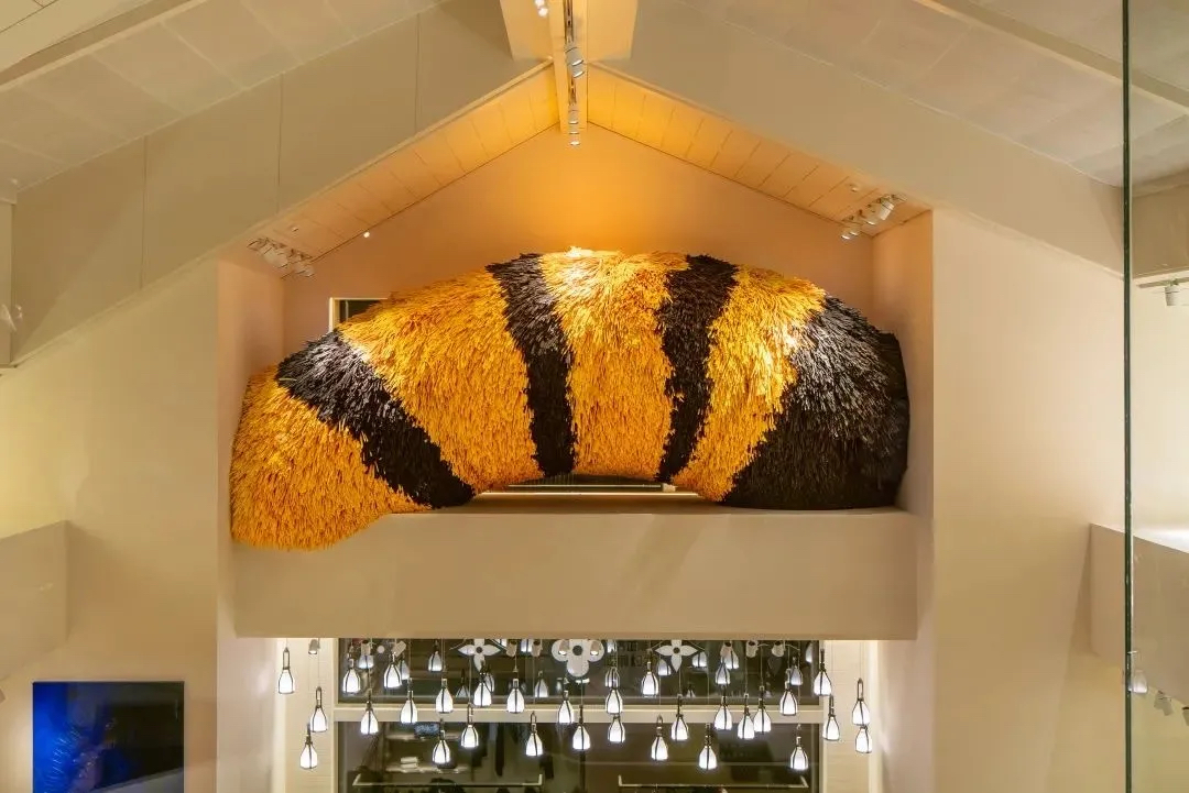 這條巨型老虎尾巴位于成都遠洋太古里,是LV為迎接虎年特意制作的藝術(shù)裝置,從俯視的角度看巨型老虎尾巴好似在建筑間游走。從大門到庭院,又一直盤旋到頂層閣樓,無論哪個角度看都相當?shù)恼鸷场?/p>