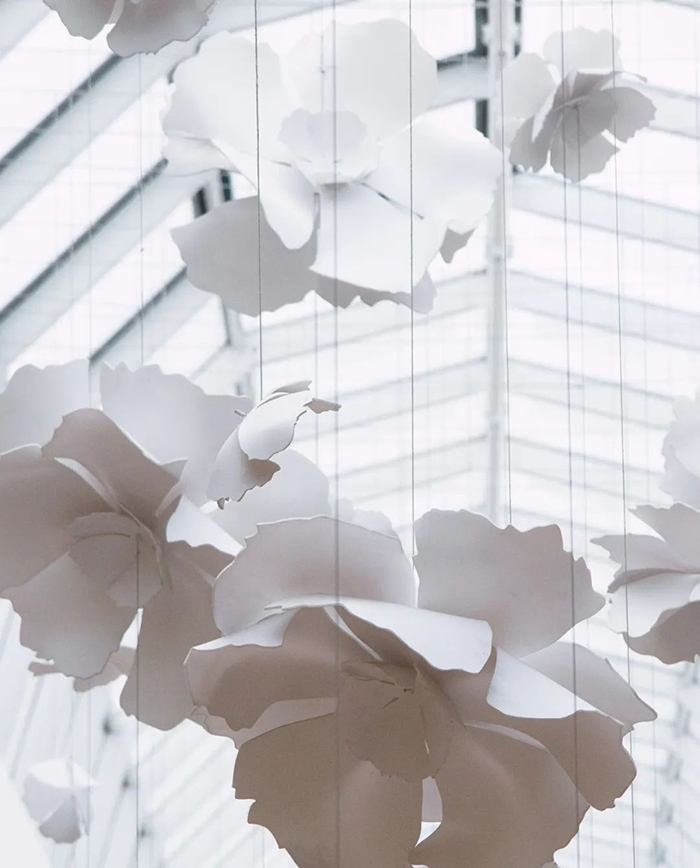 “EDMONTON”是由UV噴涂聚碳酸酯制成,長6.5米,寬3.6米,高3米。沉浸其中仿佛置身于花海之中,白色的花朵紛紛落下如夢似幻。