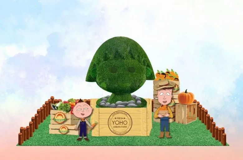 小丸子在YOHO MALL I(地下園林)以另一風(fēng)格和大家見面,一身牛仔造型的小丸子捧著新鮮蔬果歡迎大家,YOHO Urban Farm入口更有一個小丸子造型的立體草球,十分壯觀。另外,永澤及藤木同學(xué)也一邊收集園林中的蔬果,一邊恭候大家。