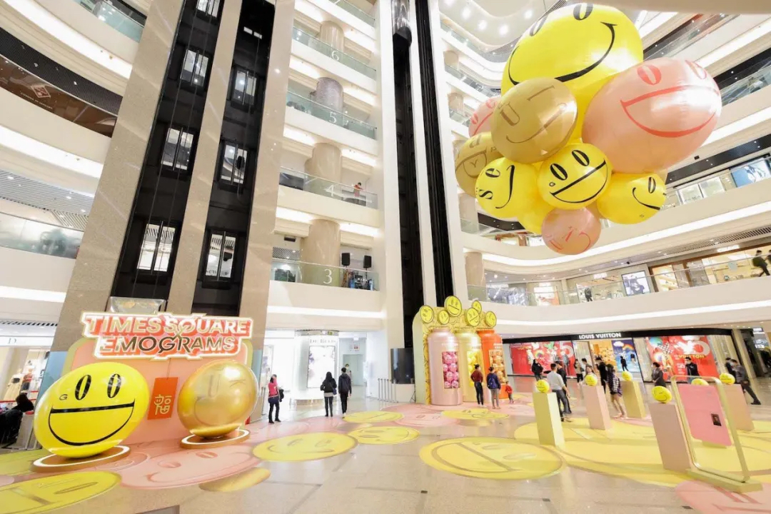 中庭的正中央更設(shè)有展覽廊,展覽柱上展出了六個精選的立體emograms,包括「GOOD」、「HAPPY」、「LOVED」、「LUCKY」、「ENJOY」及「SMILE」,讓你欣賞到設(shè)計師kissmiklos多個經(jīng)典設(shè)計之余,亦代表著時代廣場對香港人2021年的祝愿 – 希望大家擁有開開心心、好運連連、笑口常開的新一年,即使佩戴口罩也不忘保持微笑,享受生活。