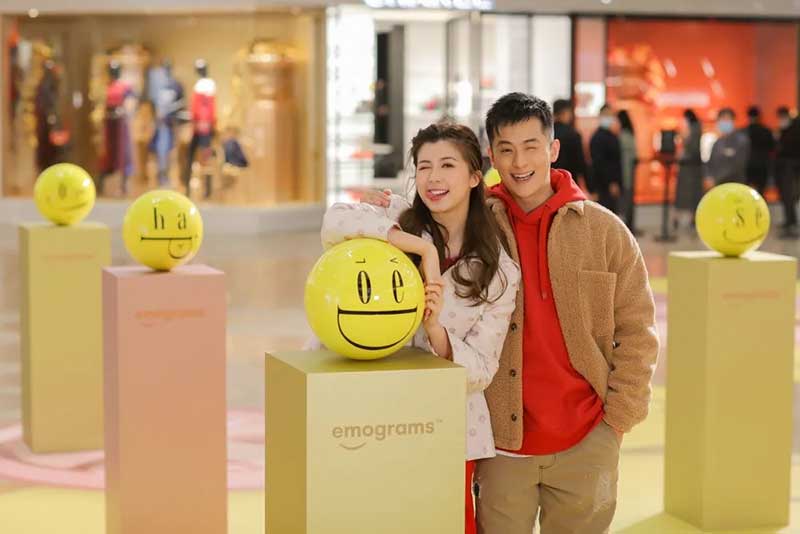 一踏進時代廣場中庭,你也會被巨型emograms 中空所吸引,8款巨型充氣emograms以充滿正能量及新春吉祥氣氛的笑臉設(shè)計,包括以英文字「COOL」、「LOVED」、「HAPPY」、「FULL」、「SMILE」、「 GOOD」、「LUCKY」及「ENJOY」組合而成,kissmiklos更首次用上金屬色調(diào),不但寓意吉祥,更完美配合新年金銀滿屋、一團和氣的氛圍!