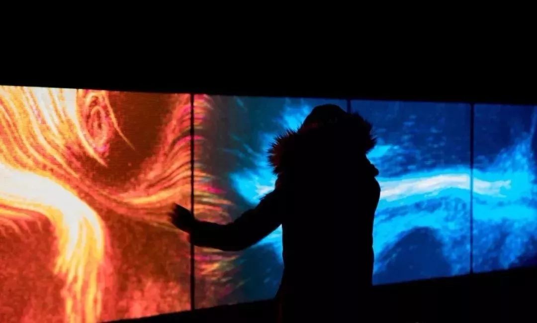 裝置靈感源自美劇《權(quán)力的游戲》,裝置的“冰與火”對立元素呈現(xiàn)出一種史詩般的景觀。體驗(yàn)者可以向冰面發(fā)射火焰,反之亦然,觸發(fā)火焰和冰粒子撞擊的模擬爆炸效果。