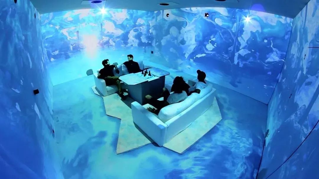 為了慶祝喜力“特冷啤酒”的發(fā)布,Superbien公司在夏季熱點(diǎn)地區(qū)安裝了一個(gè)特冷啤酒的冰凍盒子。參與者被邀請進(jìn)入場景,坐在一個(gè)封閉的房間里,家居都是投影產(chǎn)生的。墻面地面都被覆蓋了投影,初始畫面是喜力品牌風(fēng)格的綠色裝潢,清新的感覺撲面而來。漸漸地,地面被冰雪侵蝕。到后來,房間被冰全部凍住,然后碎裂。