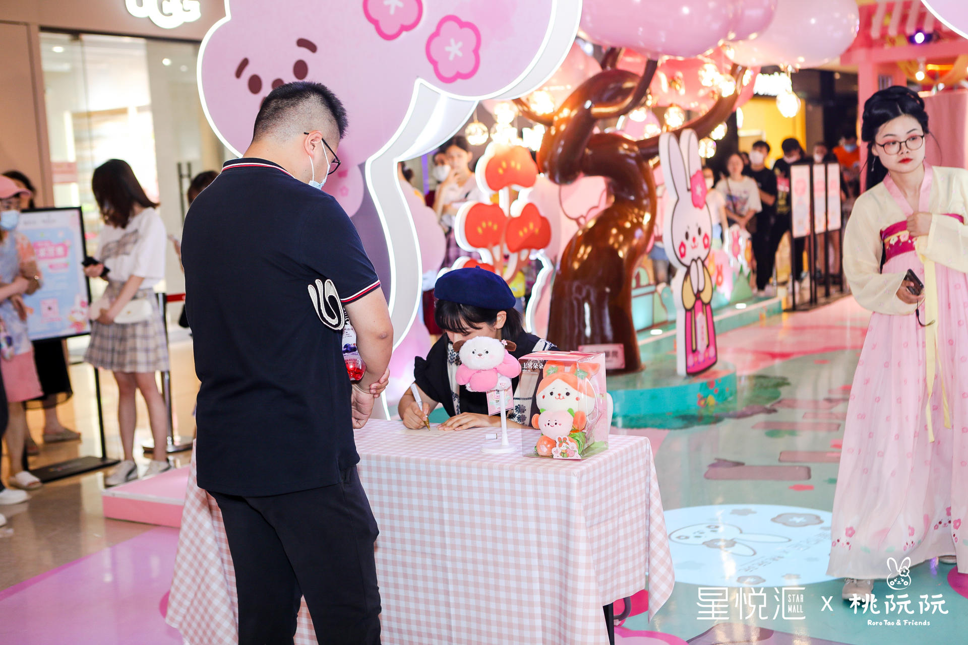 Rolife若來(lái)首個(gè)古風(fēng)IP家族——桃阮阮,繼續(xù)開(kāi)拓潮玩市場(chǎng),開(kāi)啟一場(chǎng)夏日限定“桃你歡心”主題展。本次桃阮阮主題特展作為在蘇州的首展,以陶淵明的《桃花源記》等多個(gè)中華古典文化經(jīng)典為靈感,創(chuàng)造出了位于市中心的世外桃源,深度還原了二次元“桃花里”世界。展覽整體分為心動(dòng)桃花里、甜味生活百樂(lè)圖、桃氣小“食”光、蘇子衿裁縫鋪、一曲桃花調(diào)、桃花小鋪等多個(gè)打卡點(diǎn)位,年輕化的多元空間,定制沉浸式的潮玩場(chǎng)景。每個(gè)區(qū)域的活動(dòng)和驚喜也各有不同,是潮人鐘情的打卡圣地。