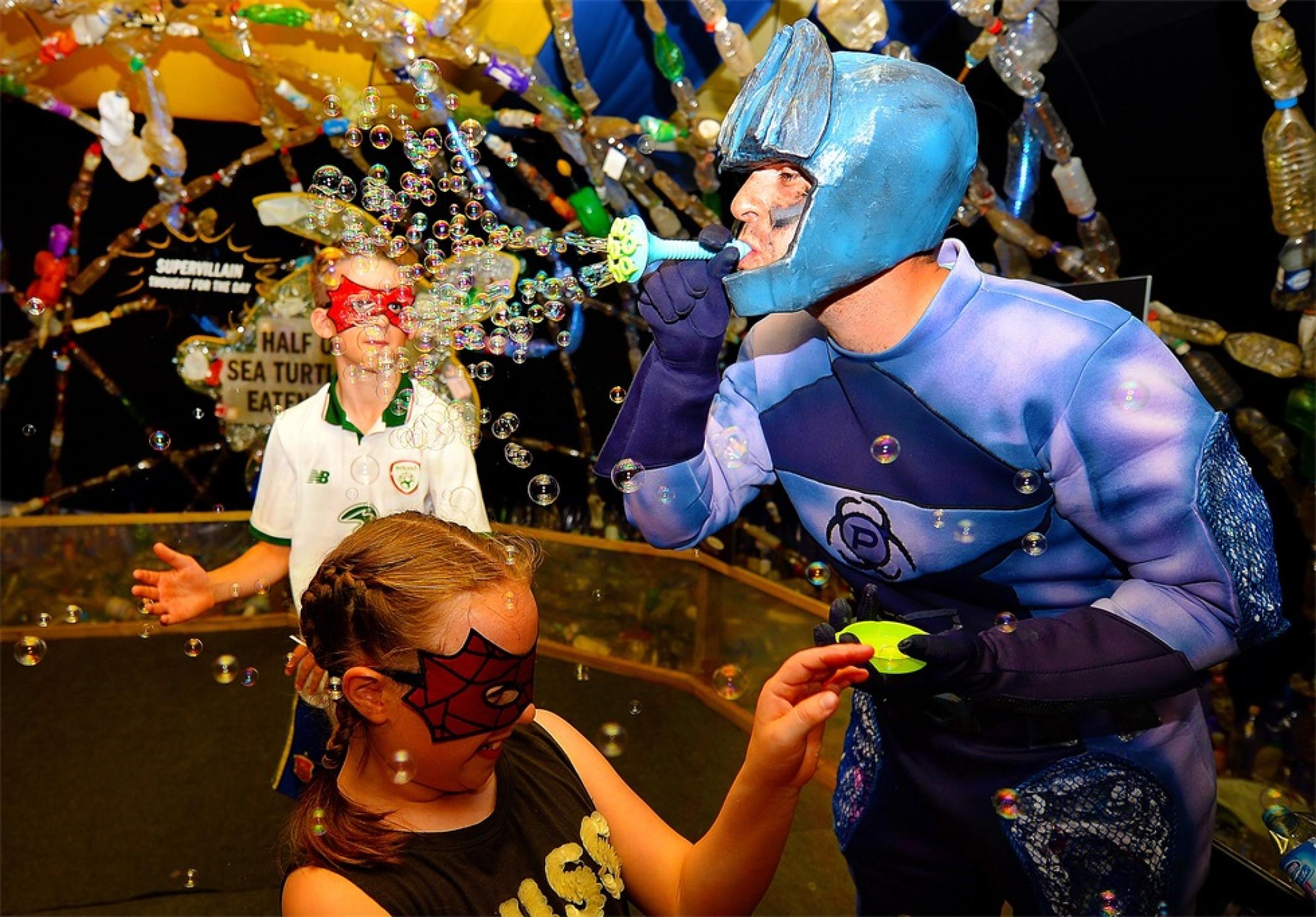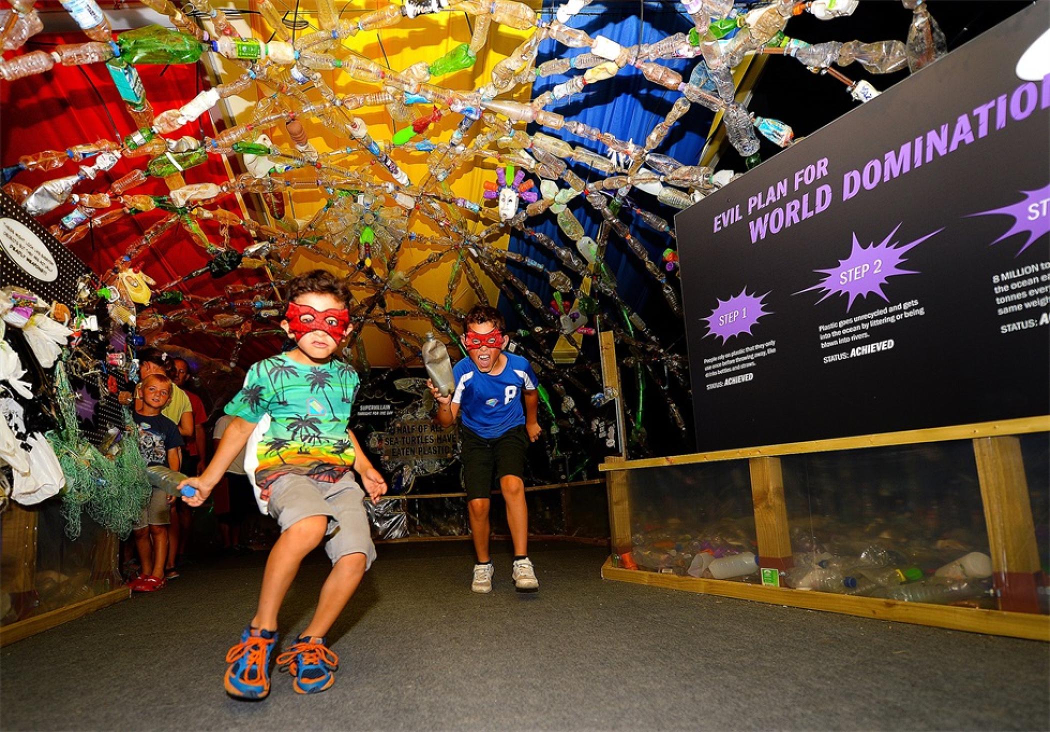 倫敦動物學(xué)會倫敦動物園的這項活動是一個兒童環(huán)保公益活動,其重點是教育兒童,讓他們了解動物王國在面對人類污染時所遭受的毀滅性影響。倫敦動物園設(shè)計了一個有影響力的概念,展示塑料垃圾、氣候變化和非法野生動物貿(mào)易的警示信息。設(shè)計公司的設(shè)計理念是使用“不尋常的材料”來創(chuàng)造關(guān)鍵的、引人注目的結(jié)構(gòu)來代表這三個信息。倫敦動物學(xué)會創(chuàng)造了一個引人入勝和有趣的故事,講述了超級惡棍“Plastico”(塑料)和他的使命:“用塑料填滿海洋,消滅所有海洋野生動物”。利用當(dāng)下流行的超級英雄概念來傳遞塑料污染程度的信息,看起來是一種傳遞信息給年輕人的巧妙方法。