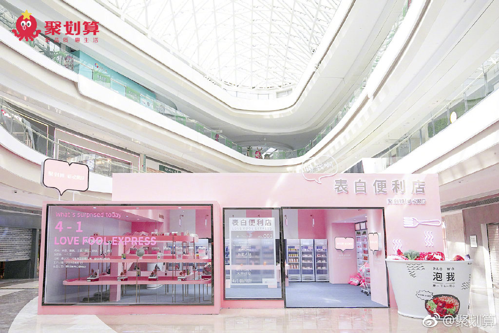 聚劃算歡聚日攜手百麗、完美日記、春雨面膜、樂視等八大品牌,在武漢金地廣場開了一家線下表白便利店,在一個櫻花爛漫的城市里,男女主發(fā)表各式甜蜜蜜的情話,連空氣都是甜甜圈的味道了。