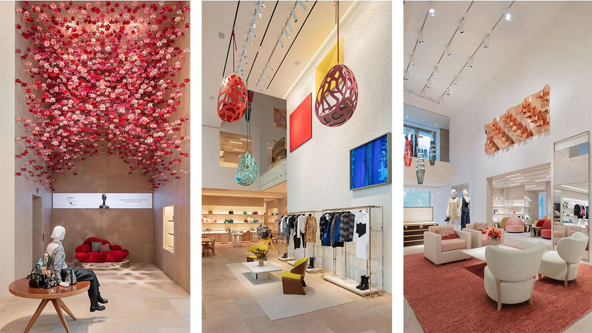 商品零星地擺在店中,貨架上永遠不可能擺滿。奢侈品商店,怎么可能給你貨源充足的印象。什么是奢侈——浪費才是。內(nèi)部裝飾的整體風格還是與近年來走現(xiàn)代風格的LV相符,“大空白”的空間里插入一些著名現(xiàn)當代藝術(shù)家的作品。不出意外,畢竟是“路易威登之家”,當然不止賣貨。對藝術(shù),特別是現(xiàn)當代藝術(shù),長期支持的LV,當然也要捧一把現(xiàn)當代藝術(shù)的場子。開幕展連賈科梅蒂(Alberto Giacometti)的雕塑也請來了。