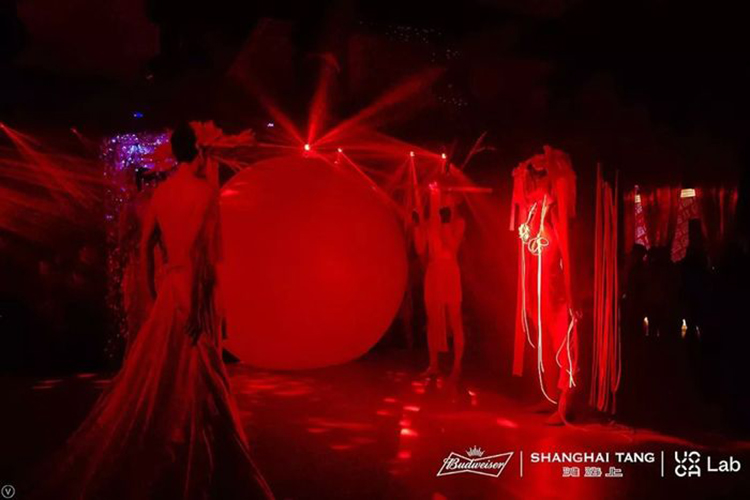 作為整場沉浸式藝術實驗戲劇的總導演,藝術家何為通過創(chuàng)作可移動及穿戴藝術裝置,結合現(xiàn)代舞、燈光設計等多重語匯,融合中國古典元素,呈現(xiàn)多維度的感官體驗旅程。到場嘉賓無不沉“醉”其中,感受超現(xiàn)實的語言及平行時空的敘事方式所講述的當代青年尋找“真我”和傳遞“紅運”力量的奇幻旅程。