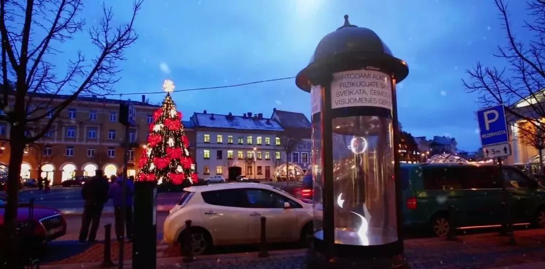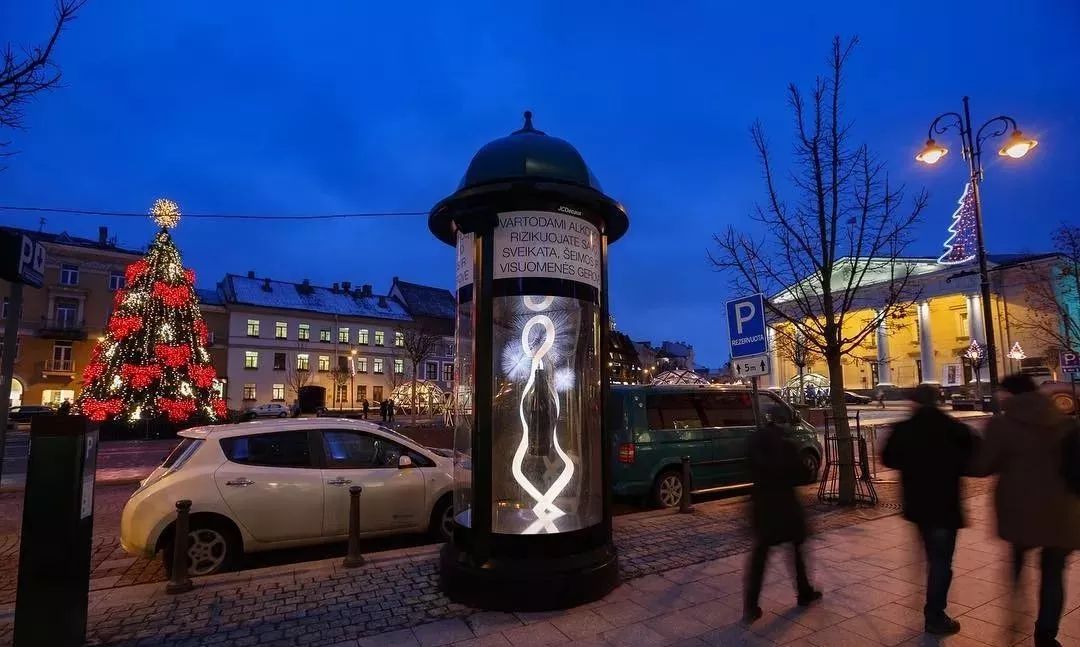 西班牙氣泡酒品牌菲思娜(Freixenet),在立陶宛首都維爾紐斯(Vilnius)市街頭,施展了一些“魔法”,打造了一款裝有氣泡酒的玻璃圓柱裝置(廣告亭)。
