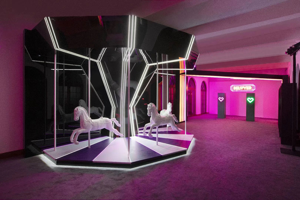 為慶祝古馳上海恒隆廣場店盛大開幕, 象征愛之城的上海,以當代游樂園形式致敬品牌的摯愛典藏,編織一場盛大幻夢留下永恒之美。童年時代的回憶,曾經(jīng)的夢想和遠方,與承載著東西方文化縮影的上海街景風光,構(gòu)筑成一場瑰麗的上?;脡簦瑸樯虾_@座摯愛之城譜寫出夢幻的寵愛進行曲。