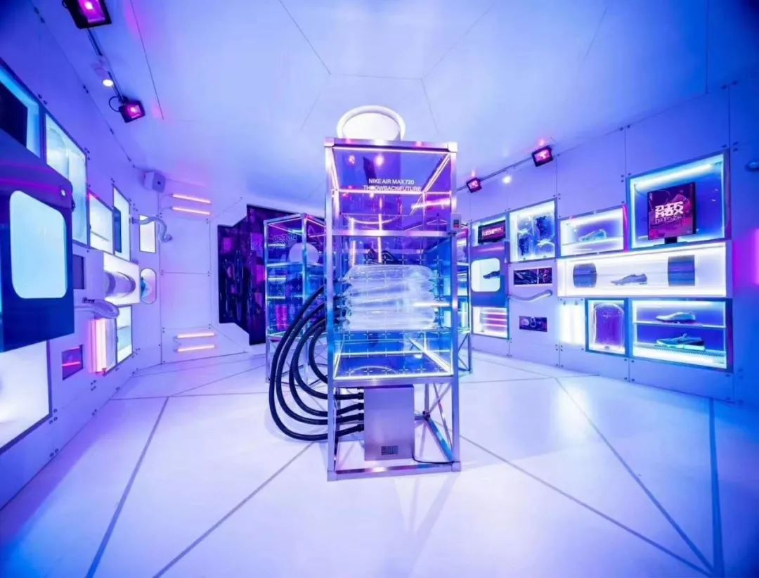 從外觀看,這就像是一個巨大而又未來感十足的AIR實驗室,等著你去探索和揭秘。在這個充滿想象力的創(chuàng)意空間里,不僅能夠看到NIKE最新推出的AIR MAX 720系列鞋款,更可了解它背后的創(chuàng)作靈感和腦洞實驗,感受NIKE如何用科技把想象變成現(xiàn)實。