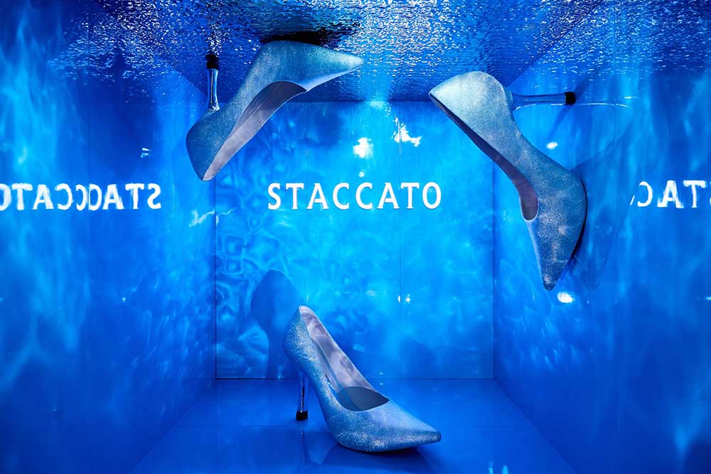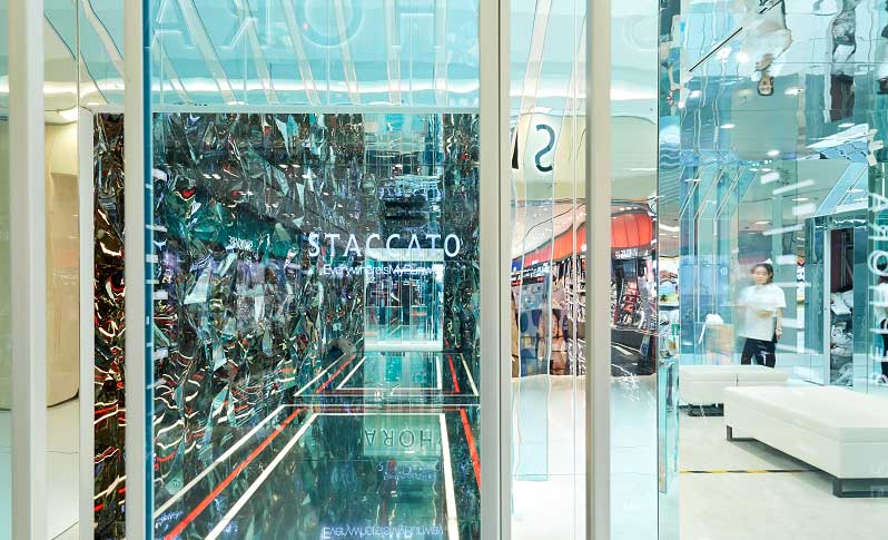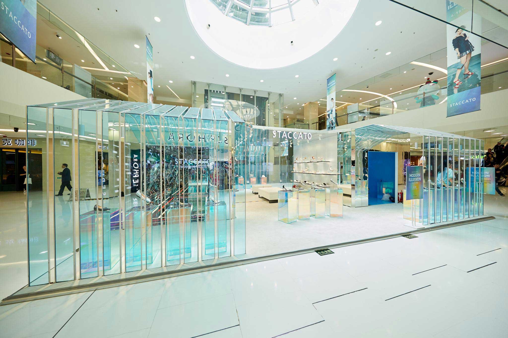 STACCATO打造的POP-UP快閃店——現(xiàn)代夢想城空降北京東方廣場,根據(jù)交錯夢境,建立夢想之城。波光銀與海藍(lán)交錯入迷秘人魚色,打造奇趣夢境的場景,輔以鏡像、幻彩、水晶、通明膠片等超實際夢境元素,光影與通明交匯美輪美奐,帶你體會一場推翻感官的白日幻夢之履。