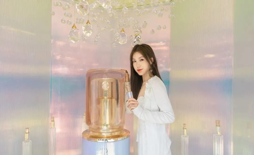 旋光樂園的第一站就是這個夢幻系數(shù)爆棚的空間,走進其中就被忽閃的鉆光擊中,簡直也太夢幻了吧。上百個剔透的吊飾至上傾斜而下,如一個充滿夢幻的瀑布般垂掛,錯落的序列在光線的投射下,構(gòu)成一幅星星點點的夢幻景象。高低不同的展臺分布在外圈,璀璨的鉆光匯聚至全場C位,便是這一瓶CPB王牌鉆光精華,超強、不容忽視的存在感,讓你可以更直觀地感受到鉆光精華之美。