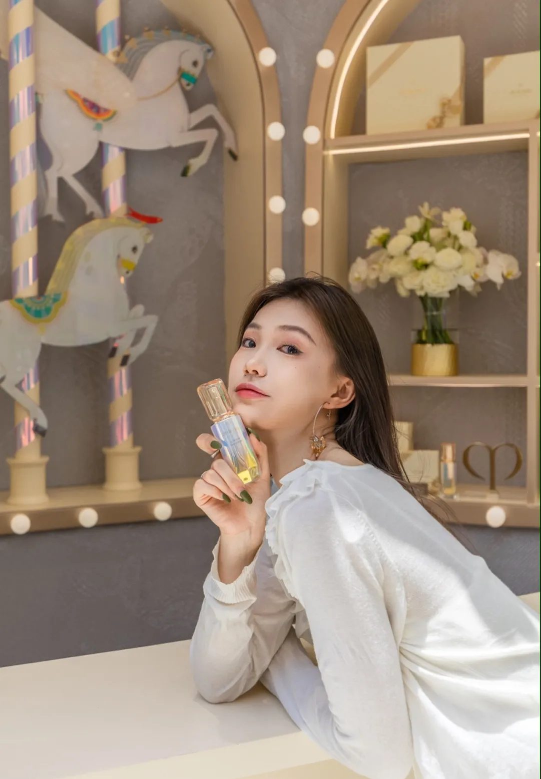 解開了隱藏美麗秘訣以后,必須現(xiàn)場上妝感受一番啦,快走進旋光化妝間,開啟專屬于你的夢幻妝容。從底妝到護膚供大家盡情使用,現(xiàn)場還有專業(yè)美容顧問親手為你試妝,讓你分分鐘收獲明星級夢幻妝。由好萊塢化妝鏡與現(xiàn)場白金色共同構(gòu)成這個絕美的化妝間,其實還是個隱藏出片點,怎么拍都是時尚大片的高級感。